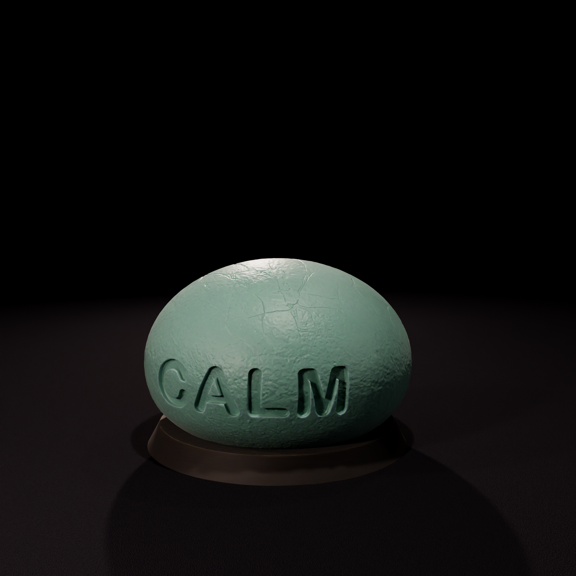 Circular figure with the word Calm carved in the center. Its smooth, harmonious surface conveys serenity and balance. Ideal for spaces dedicated to rest or relaxation. The piece was created to become a mold for decorative candles.