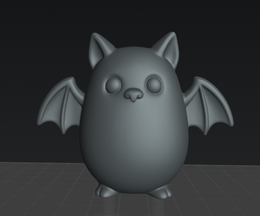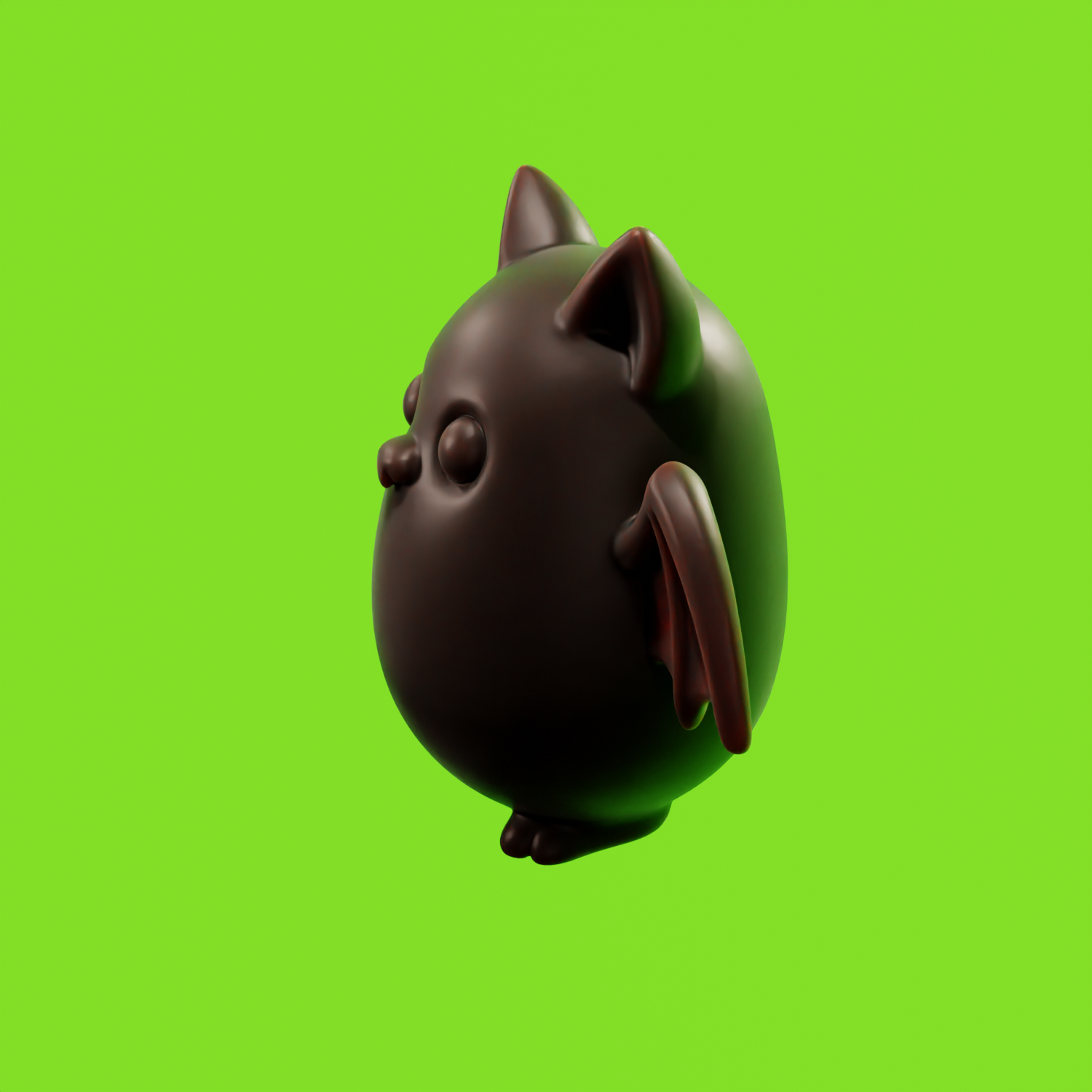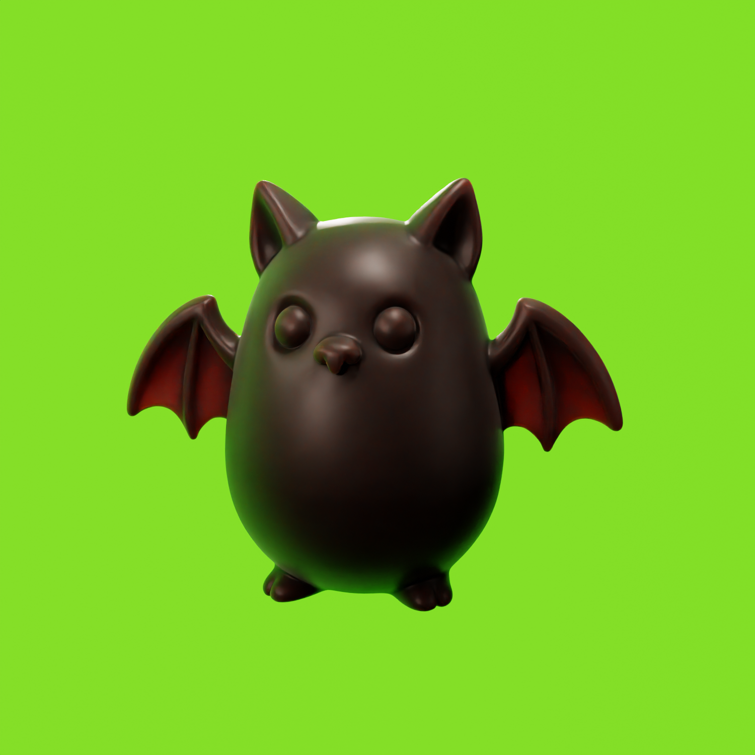 Figura con forma de murciélago de cuerpo redondeado y alas extendidas.