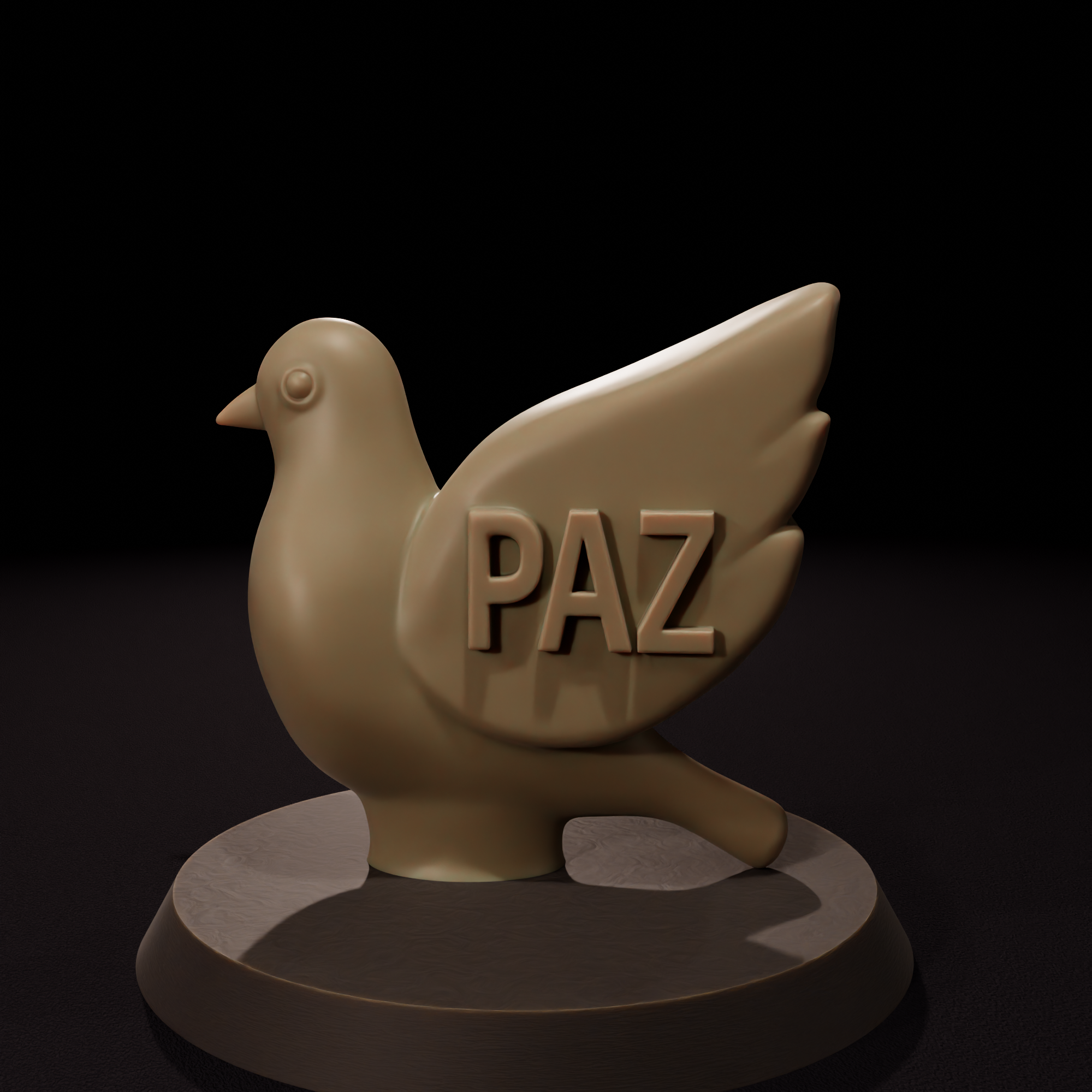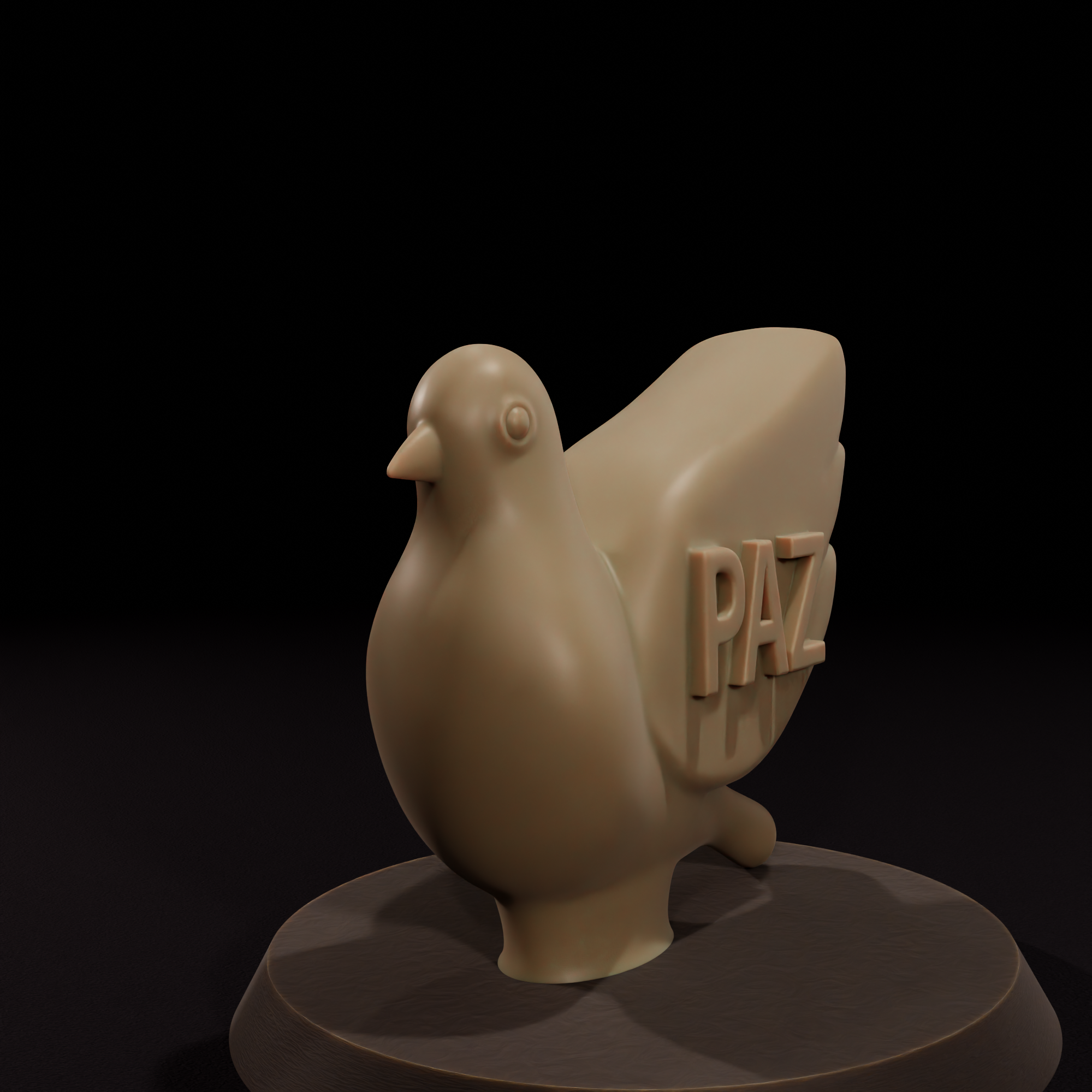 Figura con forma de paloma que lleva la palabra Paz grabada en su superficie. Sus líneas suaves evocan tranquilidad y equilibrio. Ideal para lugares que buscan transmitir calma y armonía. La pieza fue creada con el fin de convertirse en molde para velas decorativas.