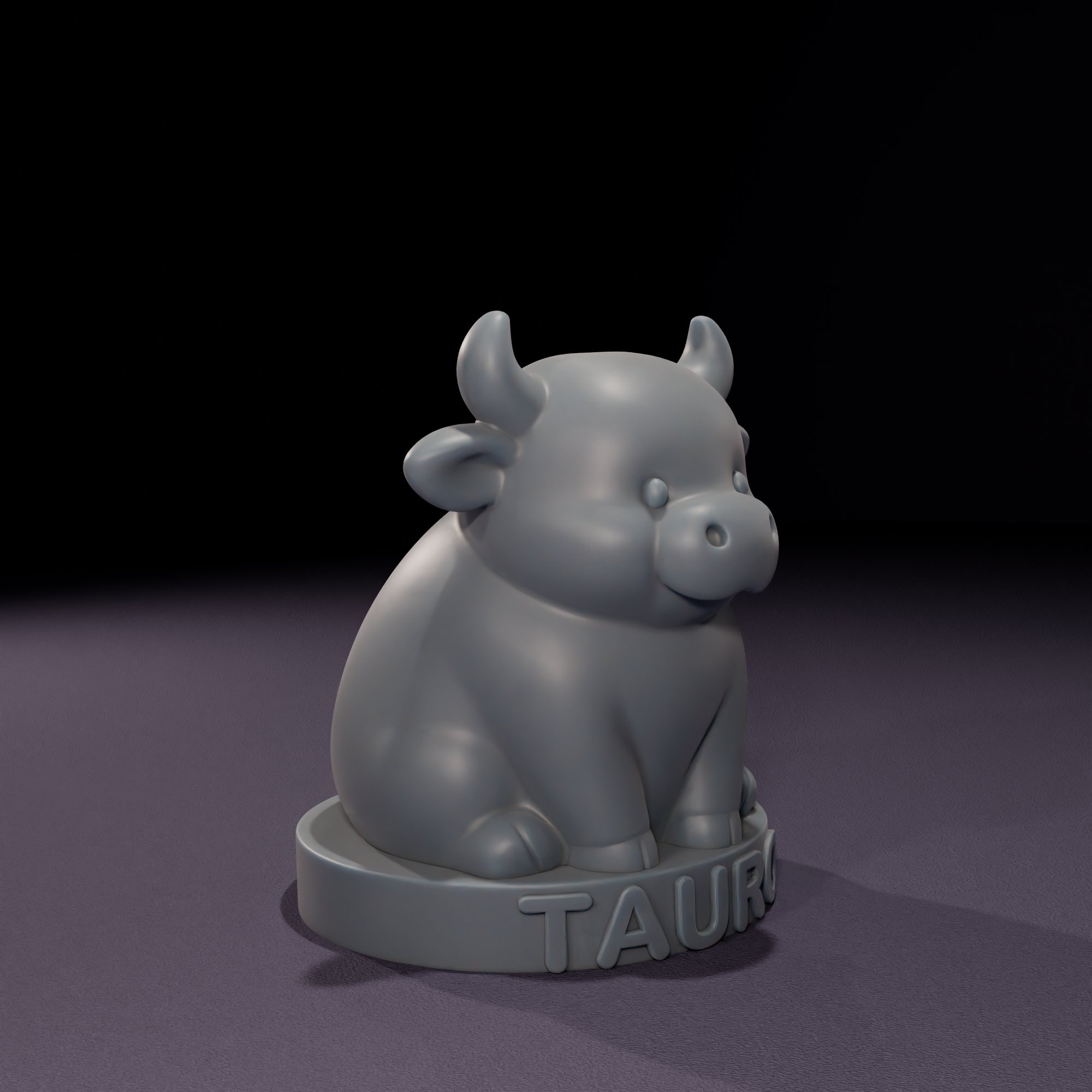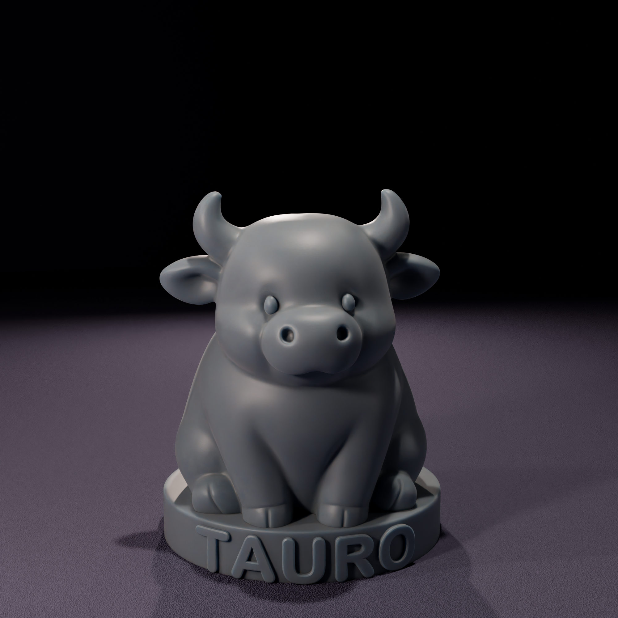 Figura chibi del signo Tauro, representada como un tierno toro de cuerpo compacto y expresión serena. Sus cuernos cortos y curvados se elevan hacia arriba, mientras que sus orejas redondeadas enmarcan el rostro, destacando su estilo minimalista y simpático. La figura está sostenida por una base circular en la que se encuentra inscrita en mayúsculas la palabra TAURO. Fue diseñada con la intención de convertirse en molde de vela.